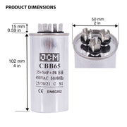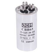 JCM AC Motor Run Capacitor 35 uf + 5 uf MFD 450v 50/60hz dual Farad Round CBB65 (Condenser Straight Cool or Heat Pump Air Conditioner Furnace, Blower, and other electric motors) Works 370/440 VAC