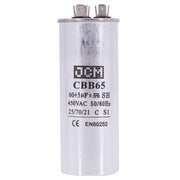 JCM AC Motor Run Capacitor 60 uf + 5 uf MFD 450v 50/60hzdual Farad Round CBB65 (Condenser Straight Cool or Heat Pump Air Conditioner Furnace, Blower, and other electric motors) Works 370/440 VAC