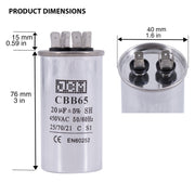 JCM AC Motor Run capacitor 20 uf MFD 450v 50/60 Hz Metal Round CBB65