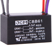 JCM 5 Wire Ceiling Fan Capacitor 4.5 uF + 6 uF + 8 uF 250VAC 50/60 Hz CBB61